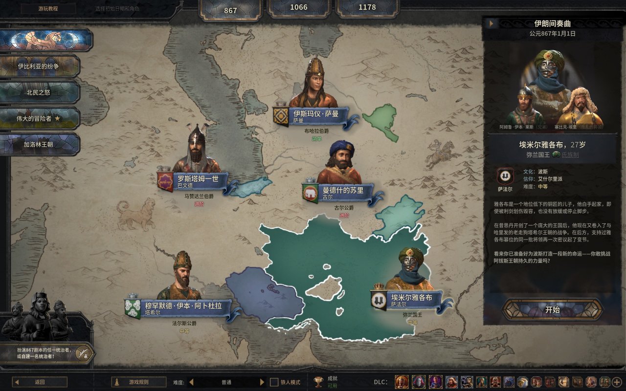 攻略;作为波斯地区最强大的统治者,最关键的还是处理你的封臣,毕竟你的封臣大多数只是畏惧你的军队,而并不愿意成为你的臣子,确保这一点后,波斯帝国可谓唾手可得。