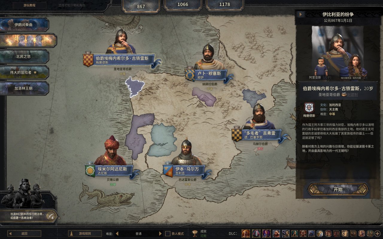 攻略;虽然你有托莱多公爵头衔,但是建议还是在北伊比利亚地区站稳脚跟再说,在此之后,尽快夺取托莱多,并以此为基地,恢复卡西家族的荣光。