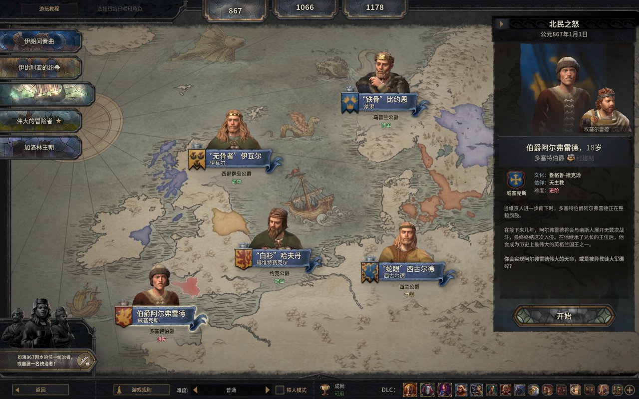 攻略;看似实力出众,但是作为封建制的维京首领,反而时刻要为自己的军费发愁,当然,由于距离英格兰诸国较近,你可以利用自己的军队快速击败他们,统一英格兰。