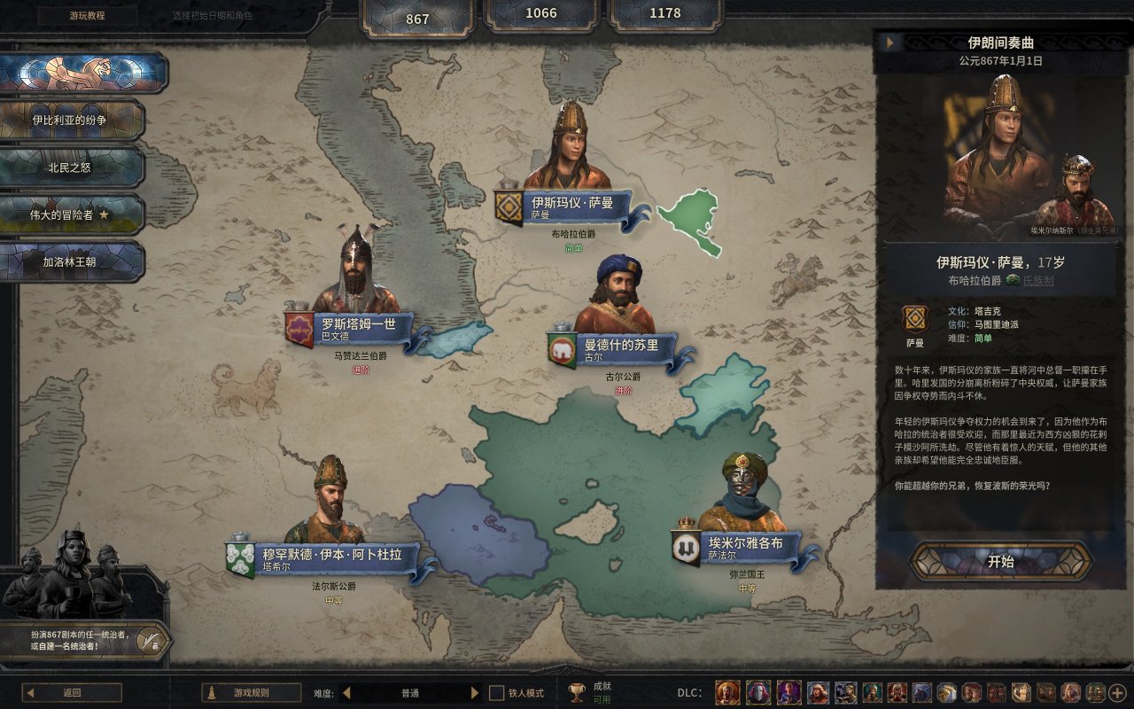 攻略;由于没有做出伊斯迈尔接管呼罗珊的事件,导致这位开局非常坐牢。建议向自己的哥哥索要梵衍那,获取那里的矿,然后逐步吞并呼罗珊的残余势力。