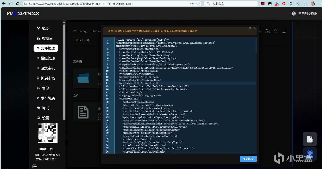 點右下角“提交修改”,回到概覽頁先“停止遊戲”,再重新“啓動遊戲”,人數限制就更新好了。