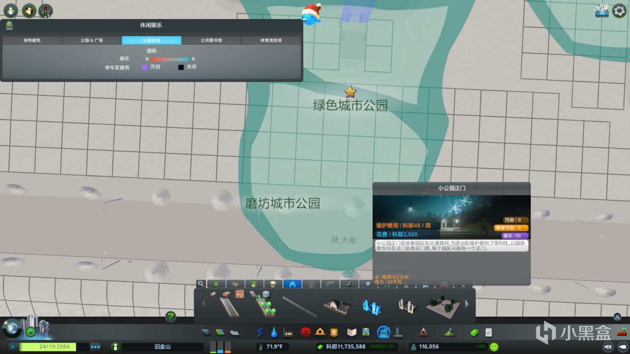 首先,我們用小公園正門放在路旁後,用公園道路進行鏈接,並在最後放上避難所(確保公園路徑是唯一可以到達避難所的路徑),可以多放幾個,收入直接成倍增加