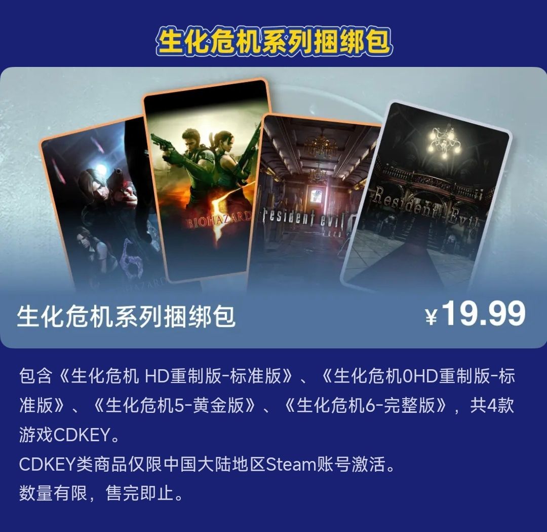 生化危機組合包的重點在於生化危機5和生化危機6都是完整版!雖然5代以現在的玩家習慣來說完全就是反人類的存在,但是6代我覺得還是值得一玩的,去年我還全劇情通關了一次,很多大場面還有各種致敬前作的部分,而且6代是我本人最喜歡的一部,整體玩下來就感覺自己親身體驗了一部生化危機的CG電影。