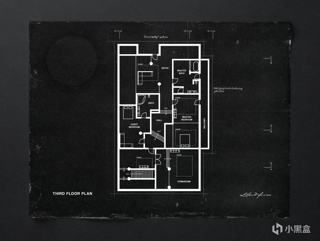 在二楼通往前门下方的楼梯间旁,有一块白板上写着博尔顿安保人员的名单,位于一扇门旁边,该门上贴有标语,告知派对宾客需从此处进入屋内。名单上显示多名警卫正在休假或被分配至“生日执勤”。其中两个名字被潦草地擦掉了,这两个人极有可能是此前在“蜘蛛”任务中被D小队突击的两名博尔顿安保人员。