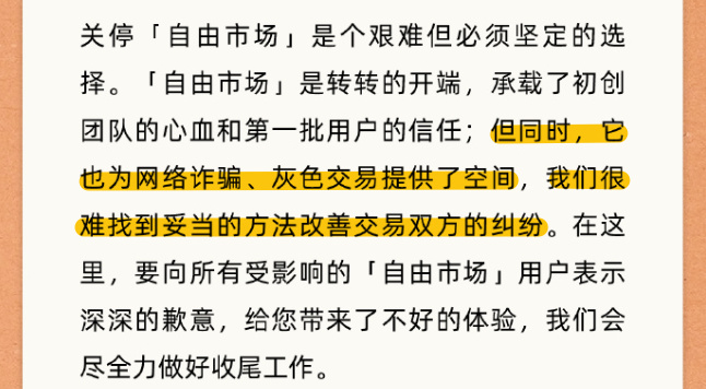 前段時間,轉轉突然宣佈要關掉自己的自由市場了。