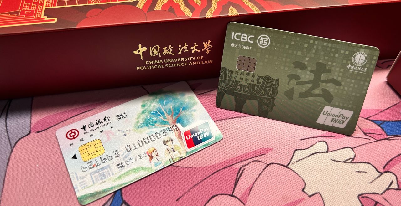 目前,你法有兩個開戶行,分別是本科生校區的中行昌平支行營業部以及研究生院的工行新街口支行,分別爲本校區的在校學生辦理銀行卡。其中非本校本科學生在研究生入學時會統一辦理工行聯名卡,但如果是本科就在你法就讀的老東西,則會自動延用本科時期的中行校園卡。