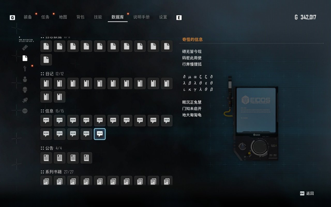接下来是新服装获得教程。其中一个条件是要完成小机器人的所有支线“计划净化地球”和“通信与链接”,然后小机器人来到希雍即可;另一个条件是完成希雍的随机任务“异常的礼物”(其实此次更新相当于异常的礼物后续)。然后去委托任务板接一个任务叫“异常的信号”,完成次任务后你将获得文档“奇怪的信息”。