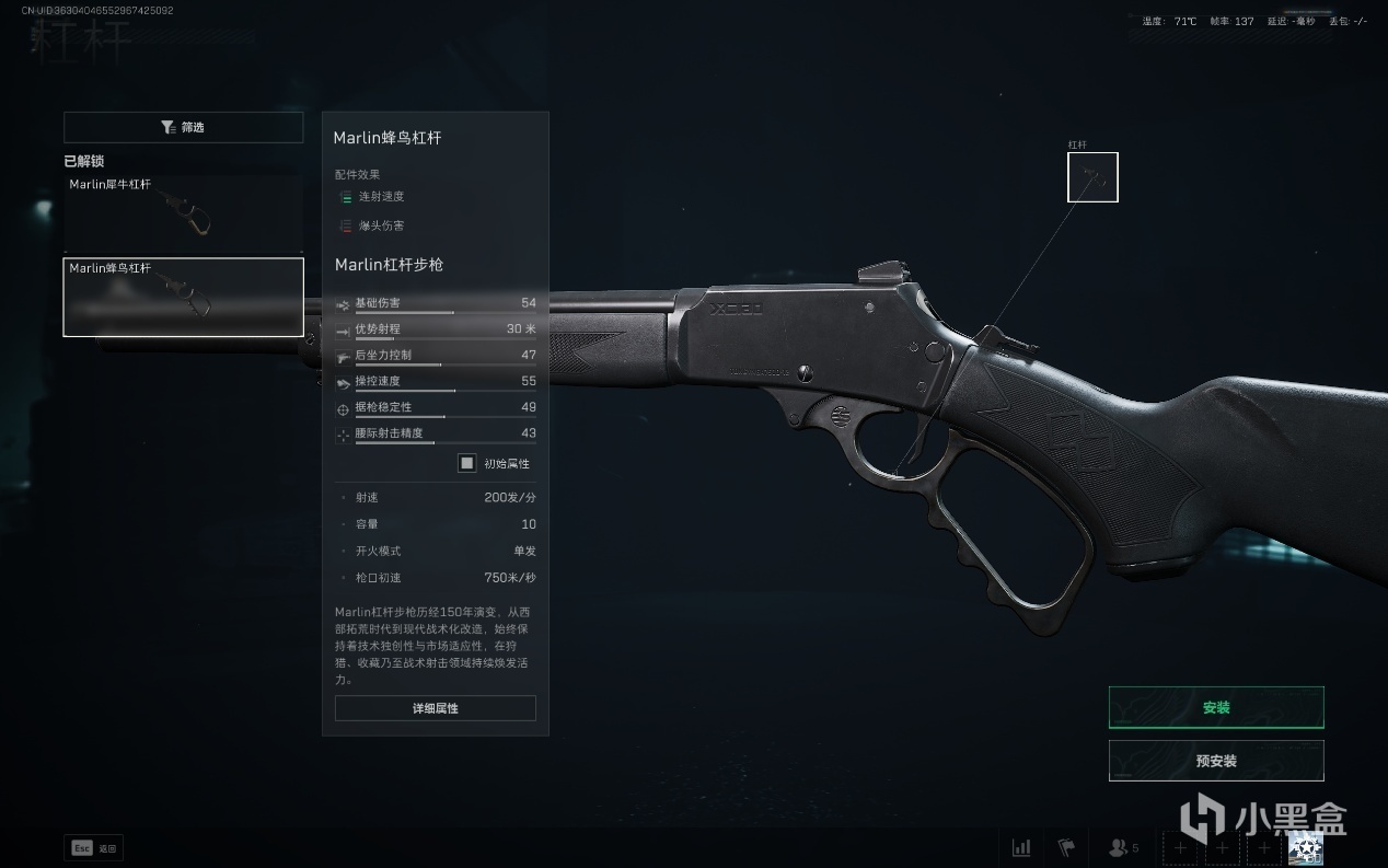 射速方面,MK2依然是100RPM的射速,即600ms的射击间隔。考虑到其依然是750m/s的枪口初速,作为一支主打爆头的杠杆式狙击步枪,不管是30m内两枪躯干还是100RPM的射速,都是很诱人的
