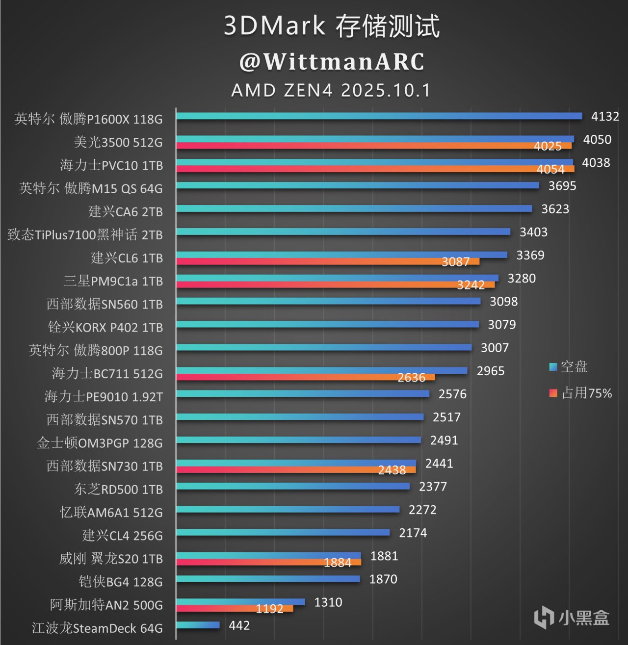 因此,它同样具备一定参考价值。这里附上部分硬盘的3DMark成绩,建议与前文天梯图“配合食用”,希望能为消费者们提供参考!
