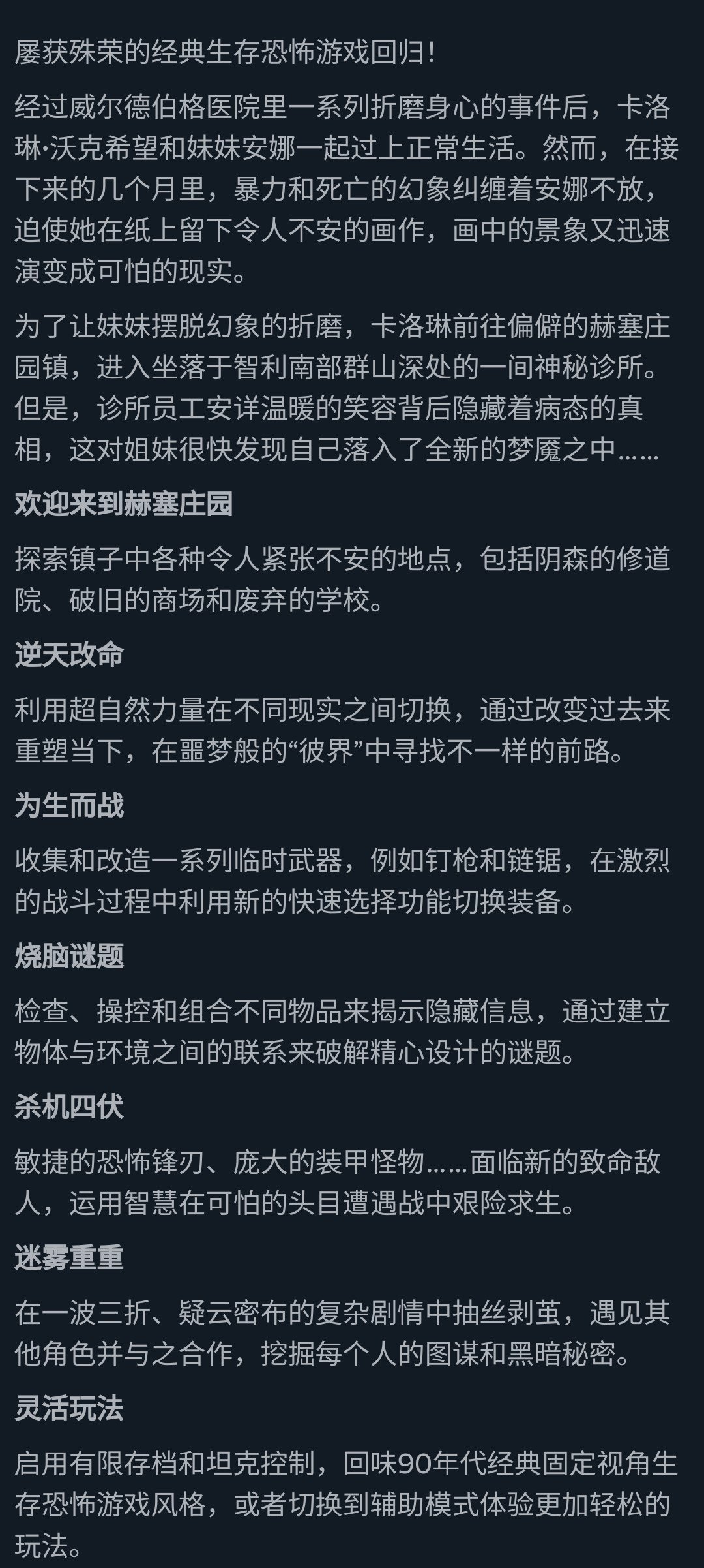 一个给玩着经典生存恐怖游戏长大的玩家打造的全新梦魇。