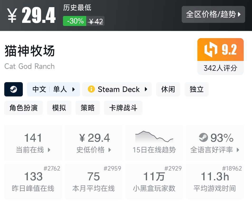 《猫神牧场》是一款肉鸽经营类独立游戏,玩家将管理上百只“睿智”的小动物,每隔一段时间给猫神大人上供,如果不能按时上供,就会失去信任,被猫神大人解雇。游戏凭借可爱的小动物形象和有趣上头的玩法在肉鸽经营类游戏中崭露头角。