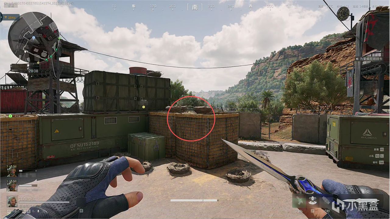 該遷徙鳥窩在皇后酒店上方的火箭兵位置,在集裝箱旁邊的木箱子上。
