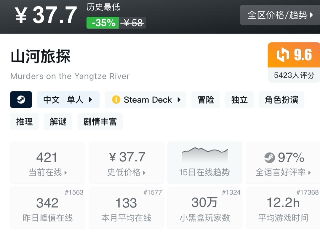 国产解密游戏,最近在玩感觉有种看唐探的感觉,虽然第一章一上来我就猜出来了,但是还是有些出入,设计的还是很有趣的!