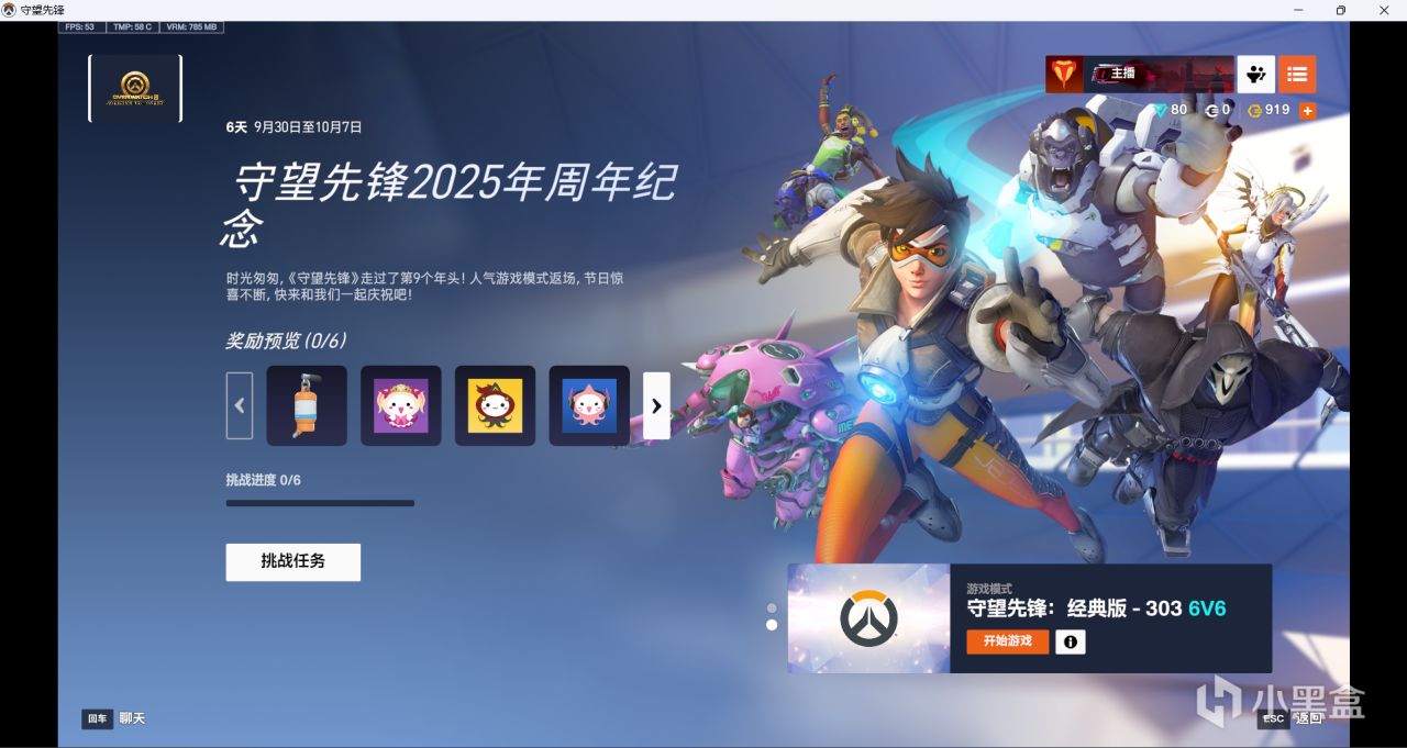 活動任務要求:在完全正常先鋒模式造成1500點傷害及15次擊殺和2018守望先鋒6v6經典模式完成20場次數,勝利場數雙倍,另依舊金箱完成周年活動任務次數。