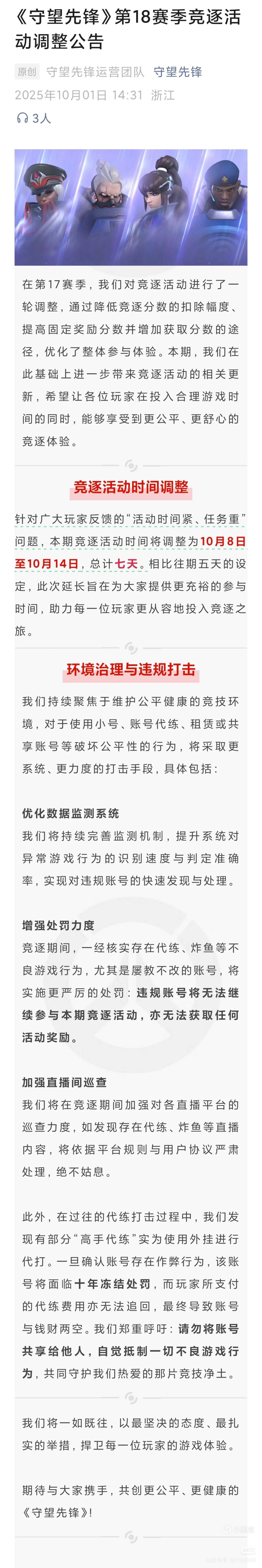 18賽季的競逐從10月8號到10月14號,爲期7天,但獲得的競技點應該還是3000點。競逐期間會加強防代防炸,對直播間的巡查會更大力度,希望有用吧。