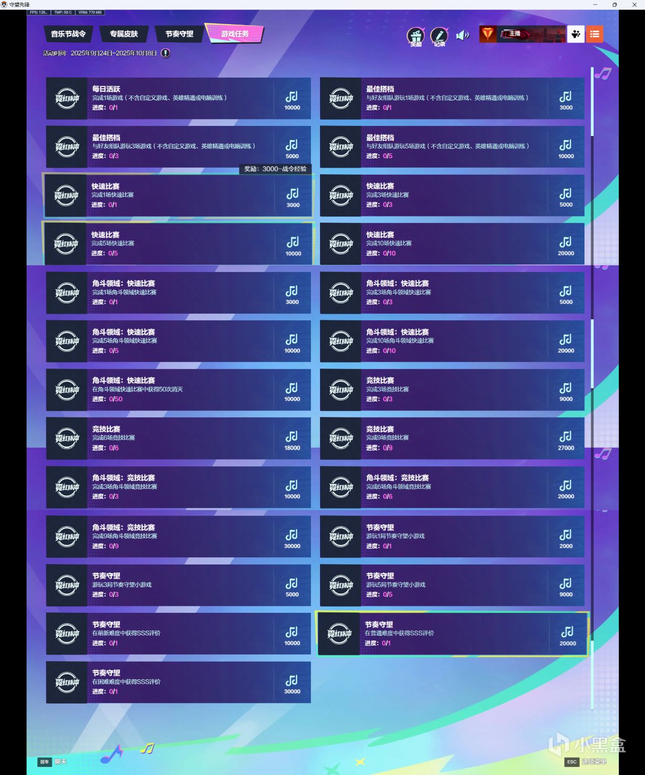 這活動比較無聊放最後。活動結束時間10月8號。可以去打一局節奏大師小遊戲領一個白箱,剩下的看一看算了。