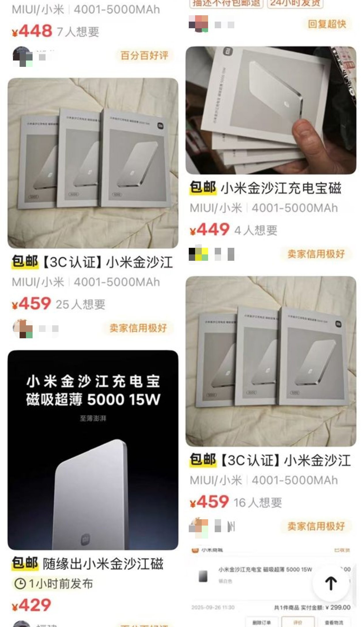 10月1日消息,小米在近期新品發佈會上推出的金沙江磁吸充電寶已成爲市場爆款。這款售價299元的充電寶在發售後迅速售罄,目前官網缺貨,二手閒魚平臺價格已被炒至459元左右,需加價160元才能獲得現貨。據瞭解,下次官方開售時間爲10月7日上午10點。目前小米官網已有超6萬人預約購買,預計下一輪開售仍將面臨“秒光”局面。
