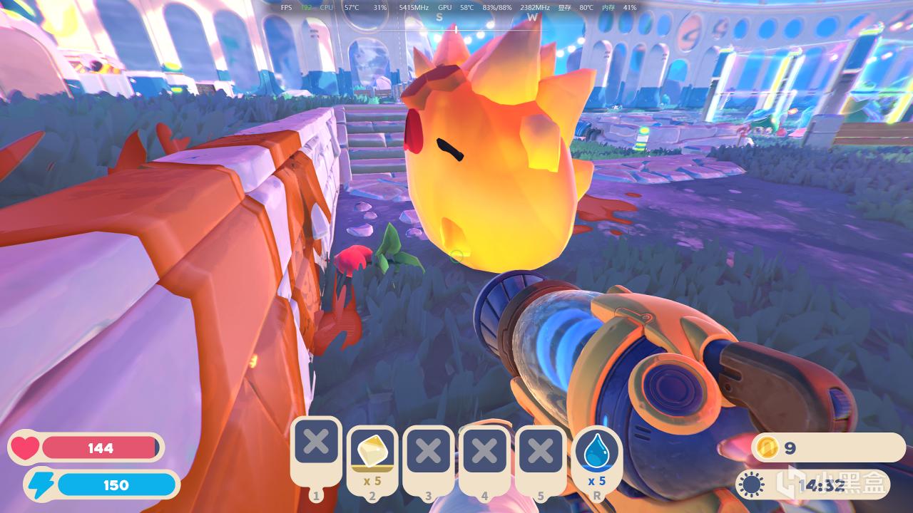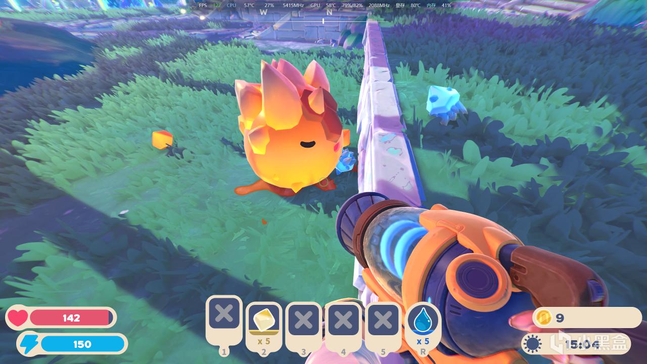 1.核心玩法乐趣(9/10): 核心循环“捕捉-喂养-收集-扩建”非常上头。真空枪的吸吐操作手感爽快,探索未知地带发现新史莱姆的过程始终充满期待,合成史莱姆的过程充满惊喜,焦油史莱姆的出现充满惊吓