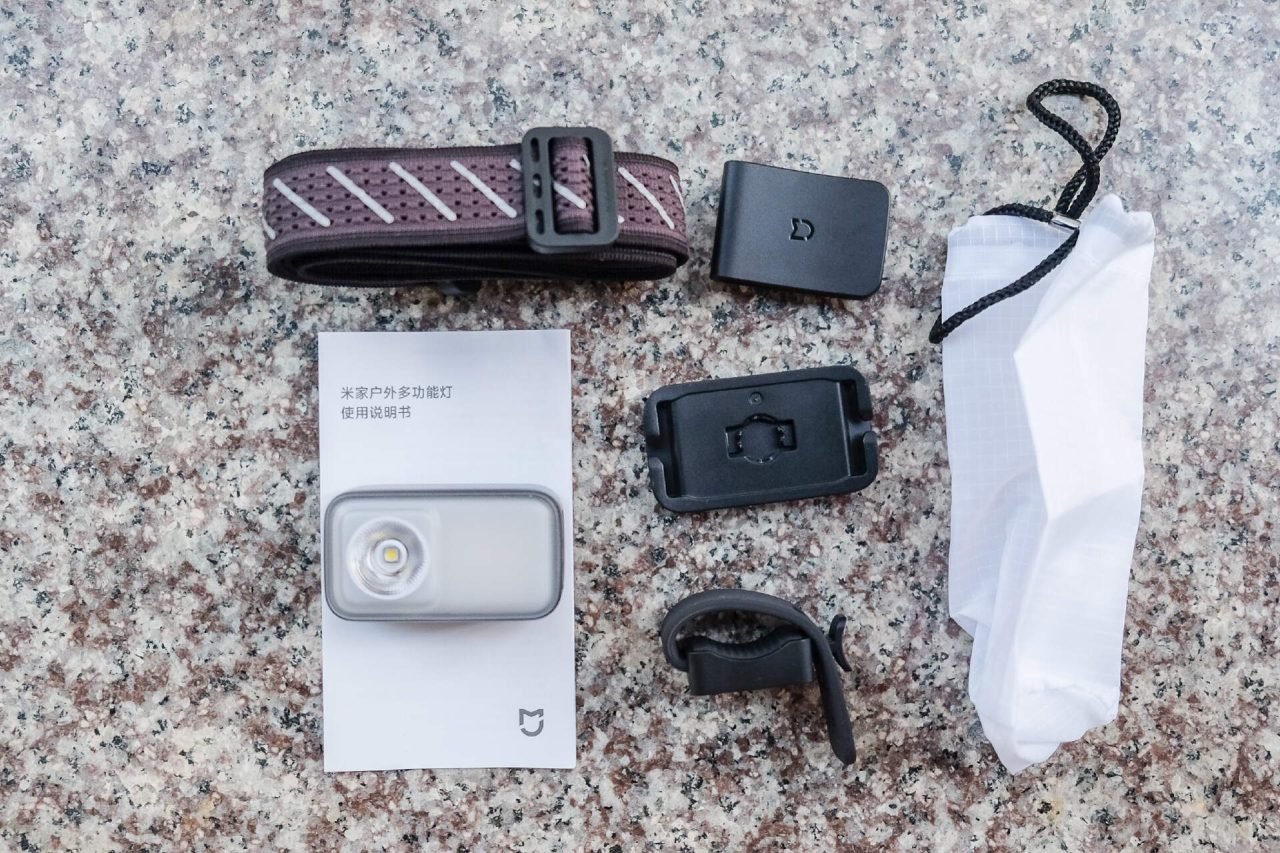 我们跳过外包装,直接进入实用的配件部分。除了主角多功能灯本体,随盒附赠的配件相当丰富,包括一条头灯带、一个帽夹、一组复合配件(用于连接头灯带或帽夹)、一个专用的骑行配件以及说明书,为各种使用场景做好了准备。