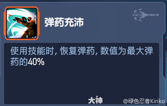 使用技能時,改爲恢復彈藥數量上限的 40%(原爲 25%)。