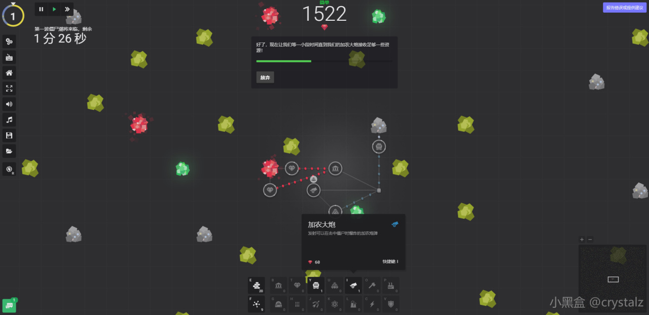 搭建自己的防御基地、开采资源、运输物资、升级技能……防御夜晚僵尸来袭。