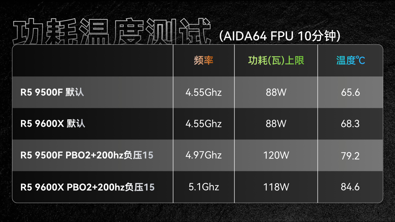 • 以及R5 9500F 默认 VS R5 9600X 默认