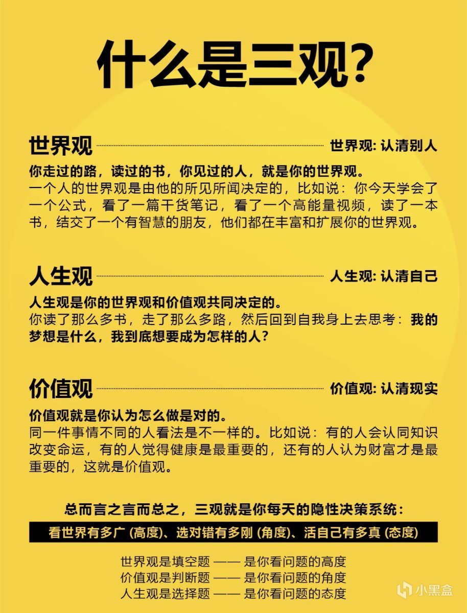 世界觀:決定你如何理解世界與他人。它由你走過的路、讀過的書、見過的人所構成。不同的經歷,都會不斷拓展和豐富你的世界觀。