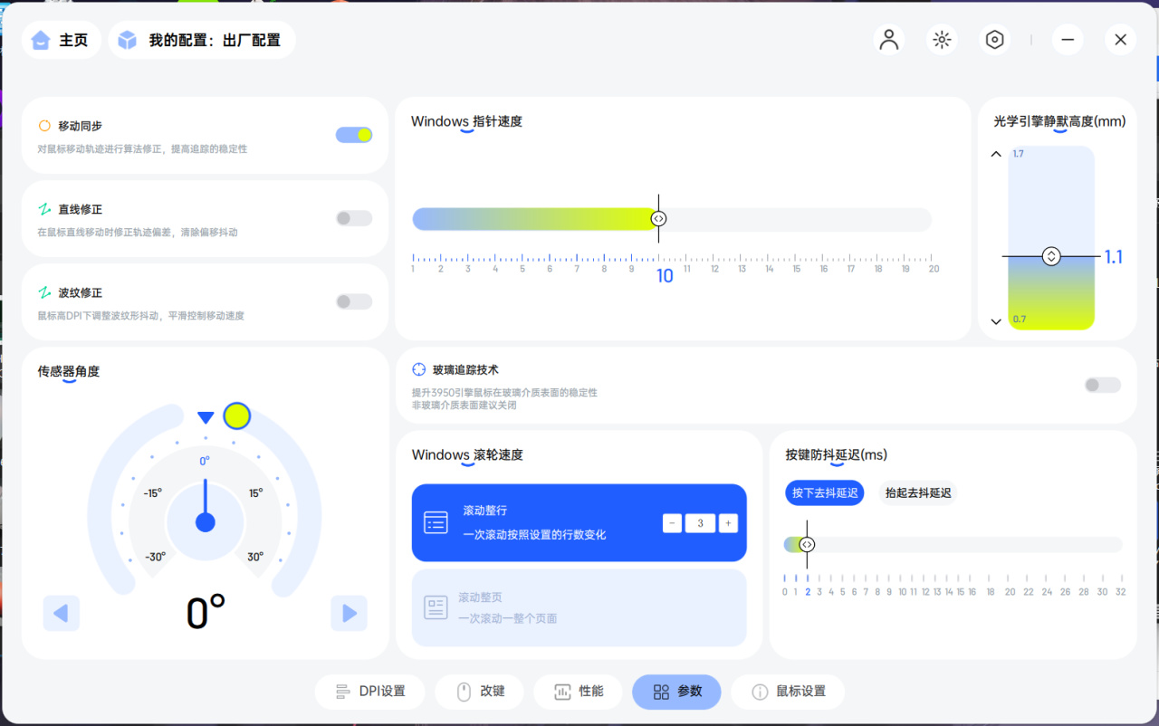传感器方面,VT1采用的是原相3398传感器,也就是3395高定版,VT1 Max采用的是原相3950 Ultimate传感器,关于这两款传感器的数据,相比有所了解的应该都知道,这次VT1支持1-2mm共11档静默高度调节,VT1 MAX支持0.7mm-1.7mm共11档静默高度调节,同时MAX版本的传感器也超频到了45000DPI,并且在10-10050DPI范围中支持以10为单位调节,并且支持玻璃追踪技术。