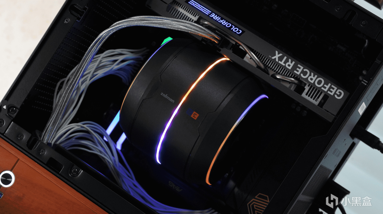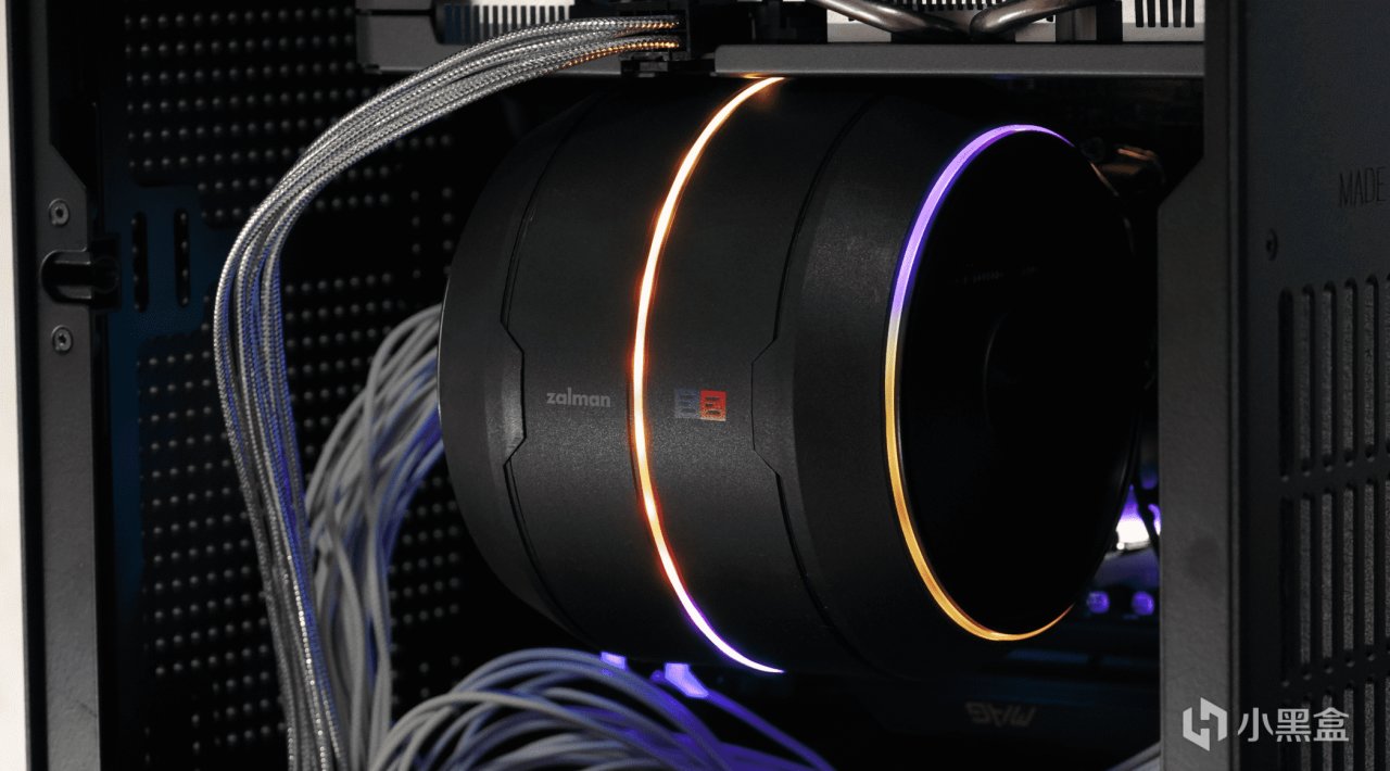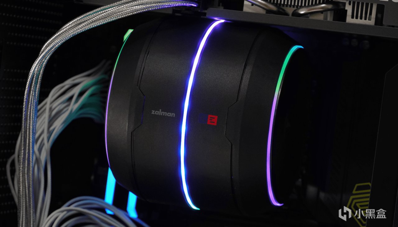 另外,zalman思民 ZET5涡流散热器在两个AF120环形风扇与散热器本体中线处各有一个ARGB灯环,支持御三家、七彩虹、华擎、雷蛇等诸多主流主板神光同步,可以与机箱内其它硬件组成统一完美的灯效系统。