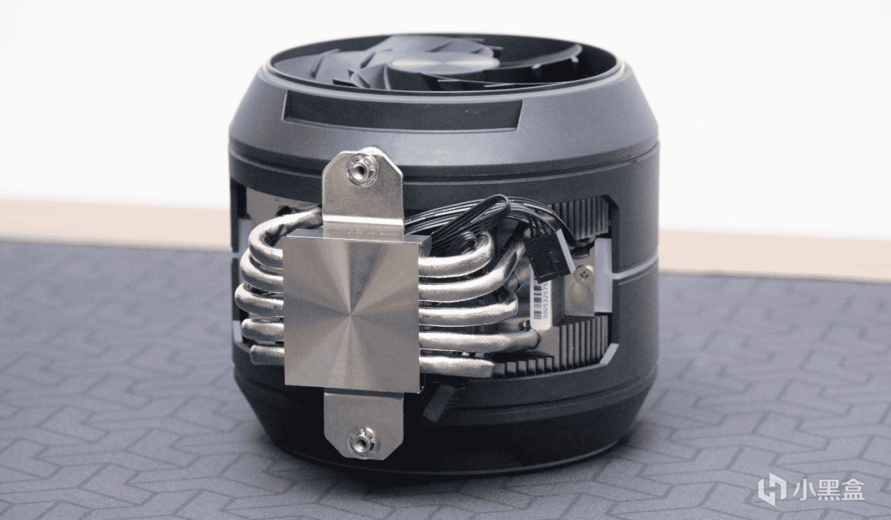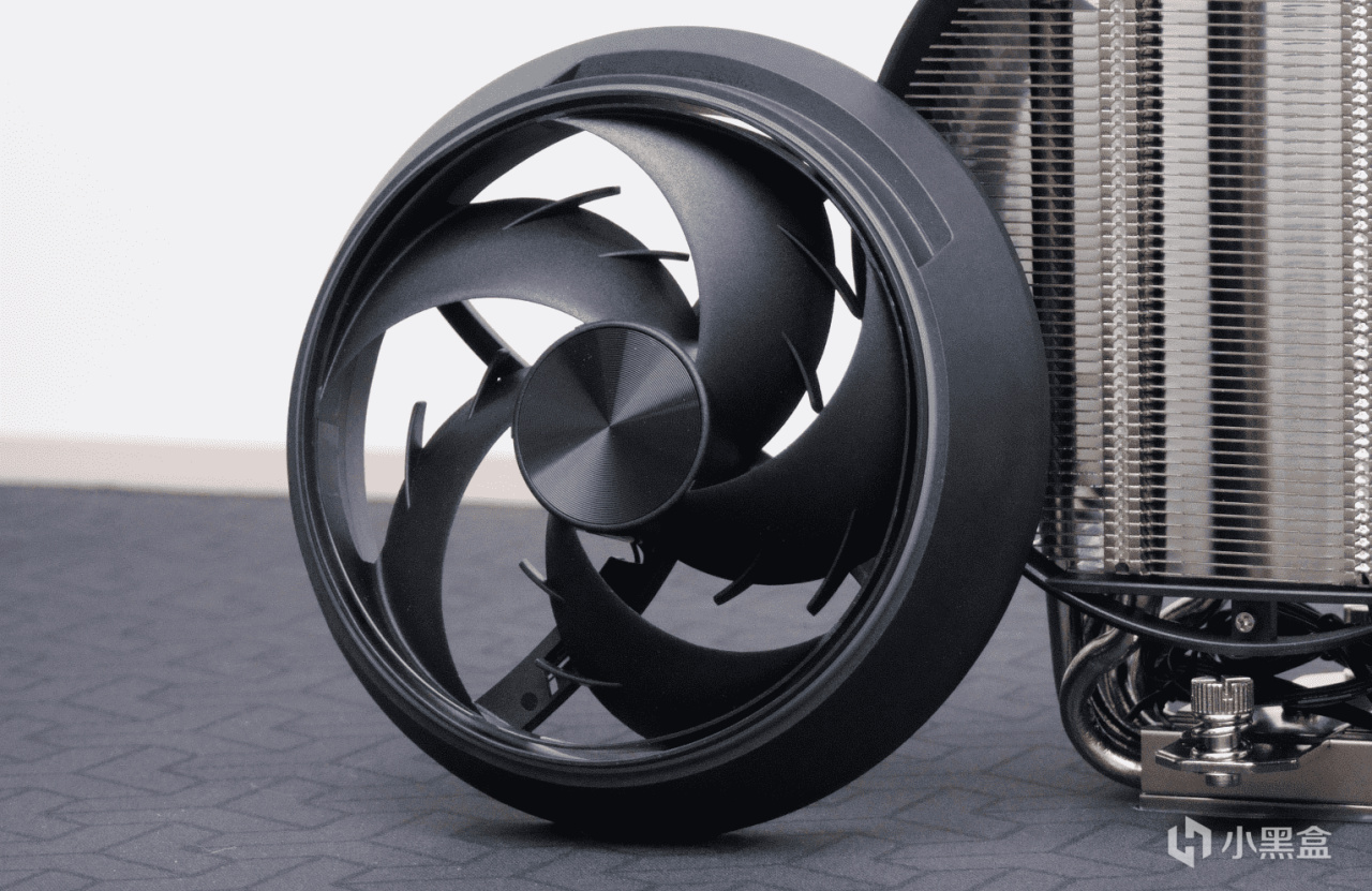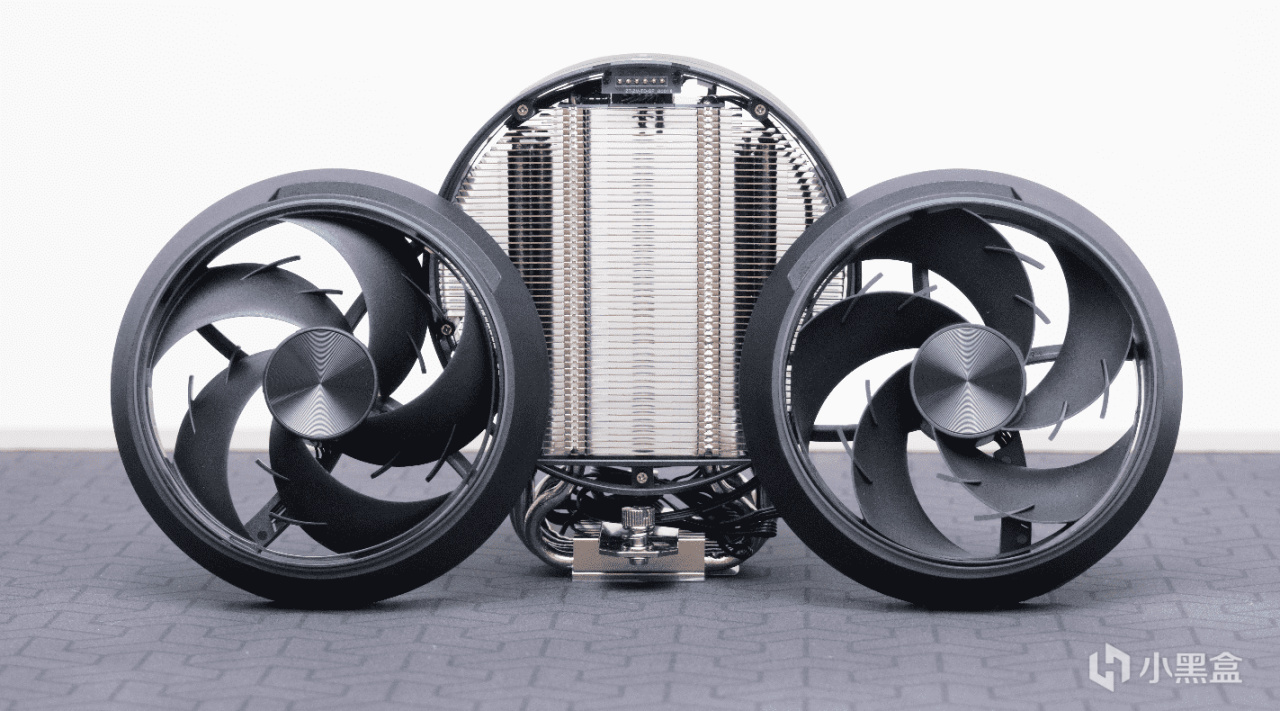 风扇与散热器主体采用了磁吸式快拆设计,安装起来十分方便,两个AF120环形风扇分别为正、反设计,二个风扇合力为散热器提供44.48CFM±10%的最大风量与1.4mmH2O±10%的最大静压,显著提升了散热器的运行效率与稳定性。