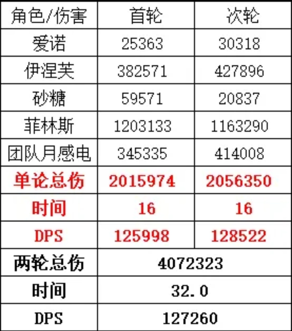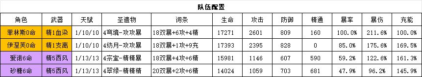 強度評價:00菲林斯+00伊涅芙+6命愛諾+6命砂糖DPS約爲12w。
