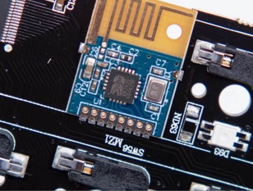 2.4G和蓝牙均被集成在一块单独的小板上并分别设有独立天线,2.4G无线IC为BK2425,供应商来自上海博通集成。蓝牙无线IC来自赛普拉斯(Cypress Semiconductor),型号为:CYW20730,其中蓝牙小板上还集成了一颗512KB的板载存储IC。