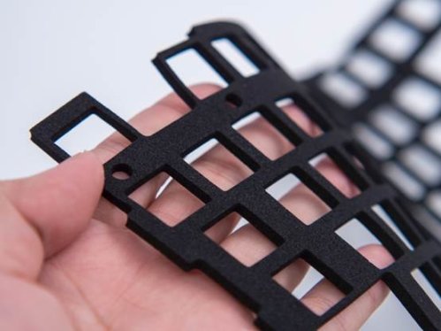 这次夹心垫用了一种新材质「EPDM」,在键盘里是个比较冷门的材料,不过在日常生活中很常见,体育场上的塑胶跑道用的就是这种材料。