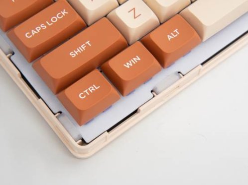 键帽采用类MDA高度,比常见的键帽稍矮一些,敲击时也更能感受到轴体本身的手感。