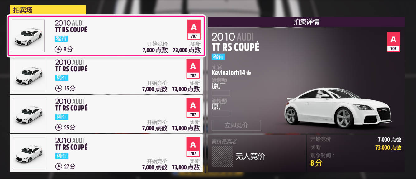 進度獎勵車輛均爲復刻車輛;系列賽進度獎勵AMG、保時捷均爲稀有車復刻;春季賽進度獎勵RS4是後臺車