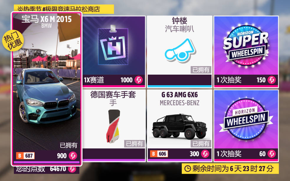 本週更新車輛爲2015款BMW X6 M和2014款MERCEDES-BENZ G 63 AMG 6×6。X6M是抽獎車,G63是車展車。
