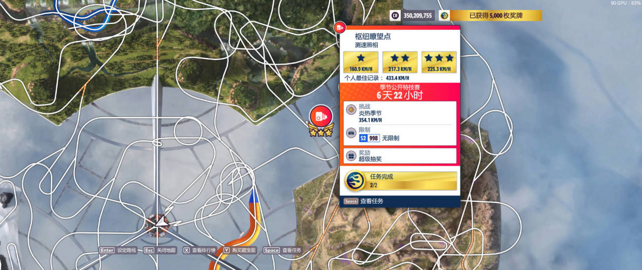 獎勵爲:超級抽獎(完成條件:354.1km/h)