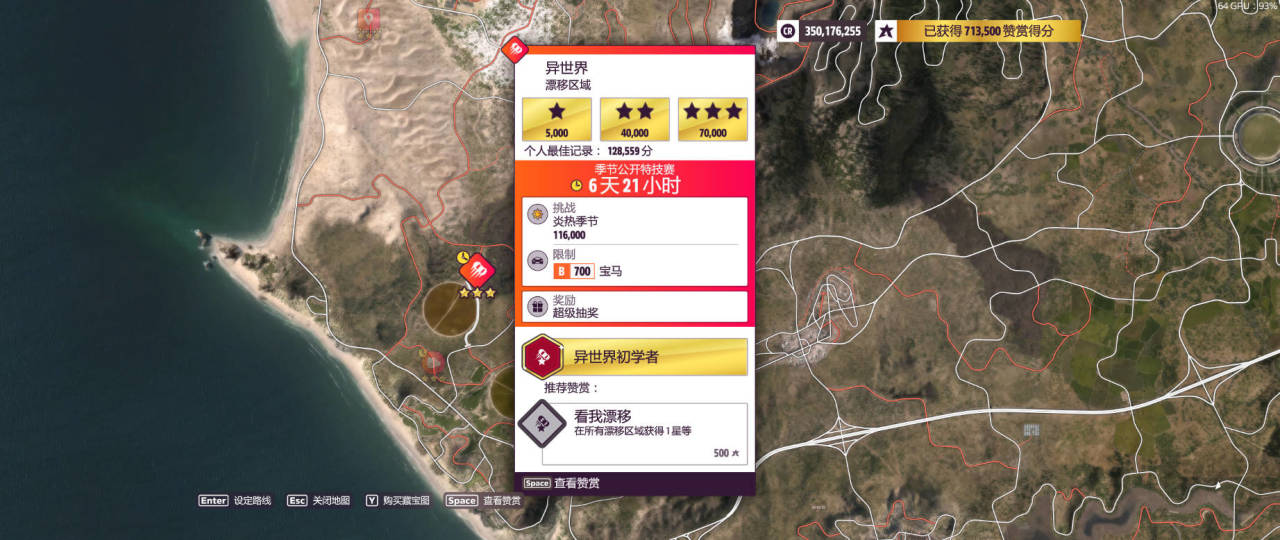 漂移區域:異世界,完成獎勵爲超級抽獎(完成條件:11.6w)