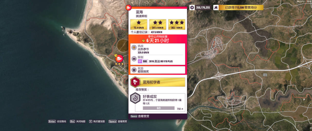 測速照相:藍海,完成獎勵爲超級抽獎(完成條件:329.9km/h)