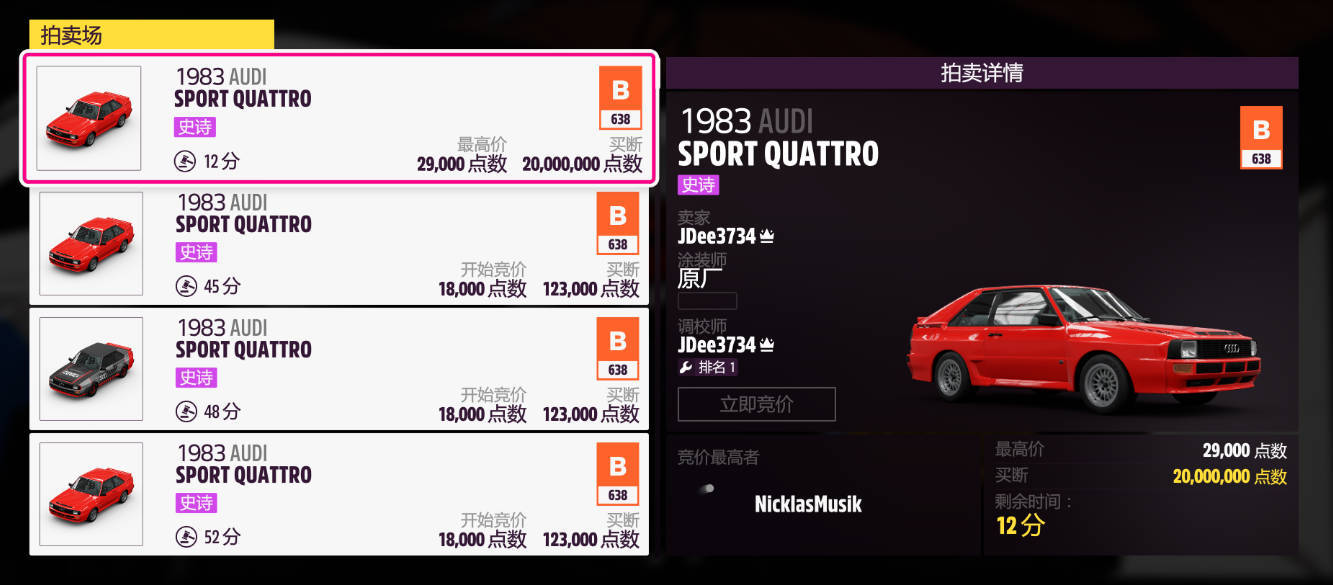 1、蛇頭賽事:終極考驗#原廠車對決賽:奧迪QUATTRO(限制B(638)-無應用升級:1983 奧迪 QUATTRO)