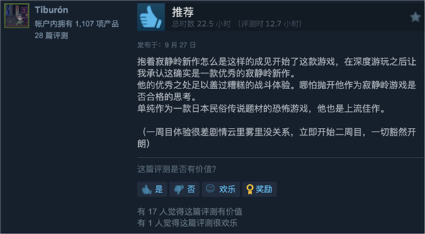 当然《寂静岭 f》的实际质量还可以,好评率 70%,大概是佳作和烂作的中间阶段。