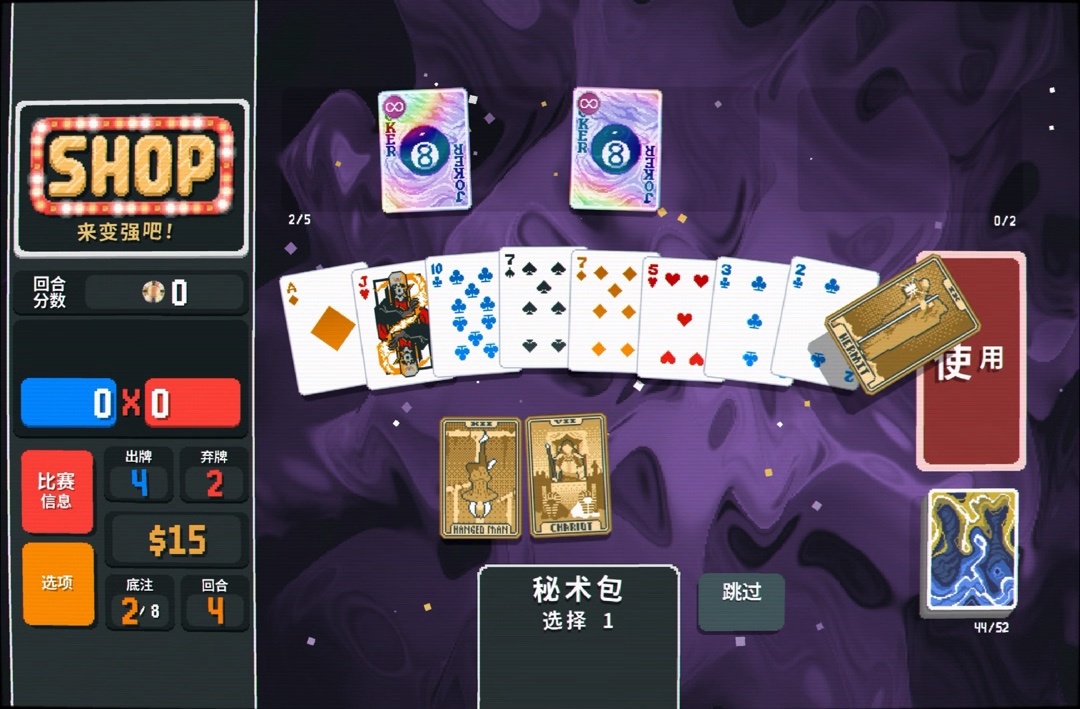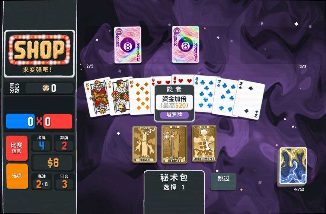 八號球(8 Ball):打出的每一張8有¼幾率在記分時獲得一張塔羅牌。