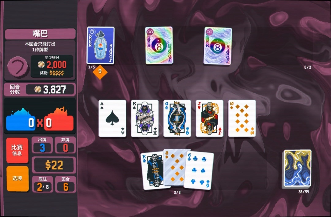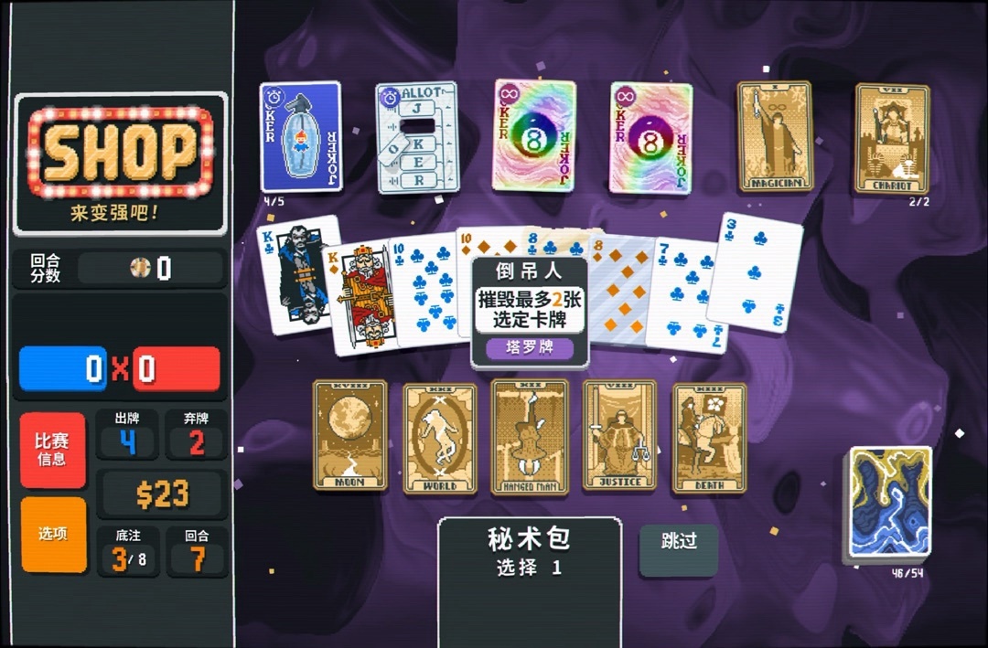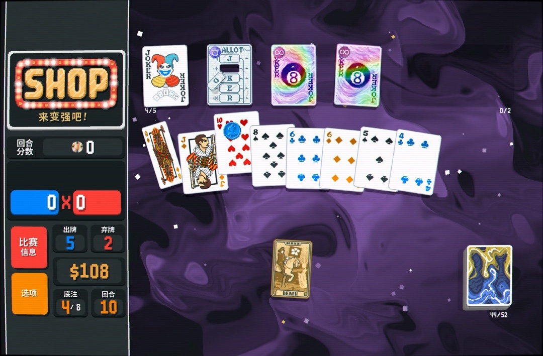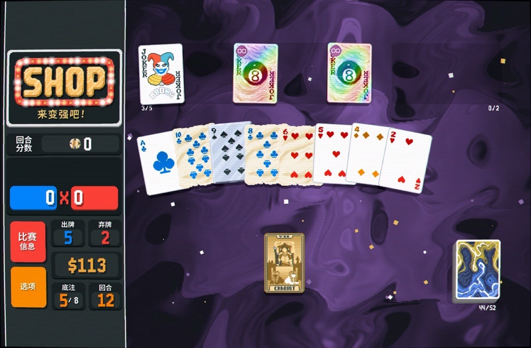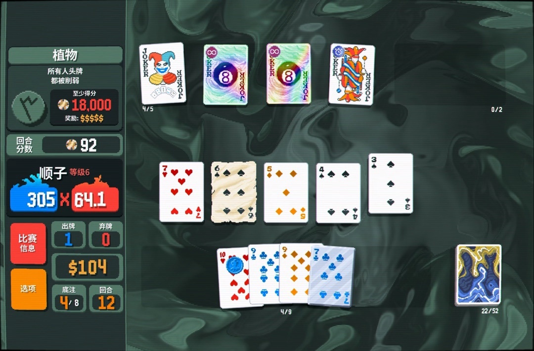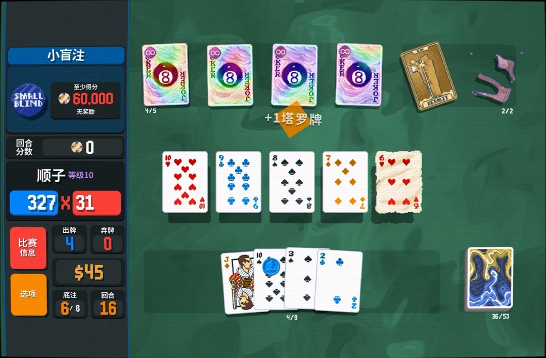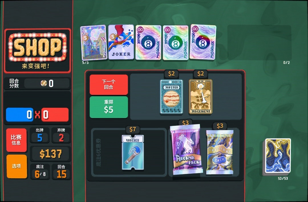 審判給了一張陰險小丑,可能大夥都不知道這小丑是幹啥的,確實沒啥存在感😅總之就是牌型包含順子,籌碼+100。我現在順子等級並不是很高,拿一個加籌碼的小丑還是不錯。