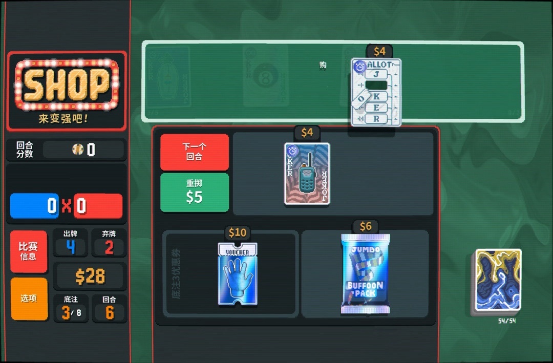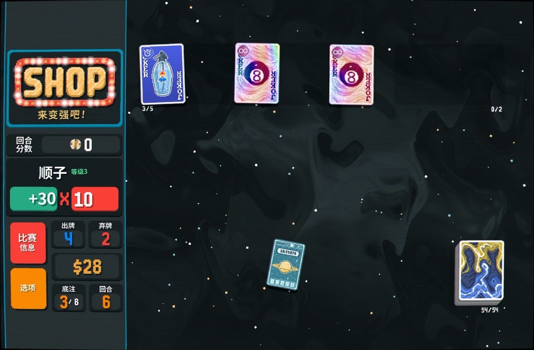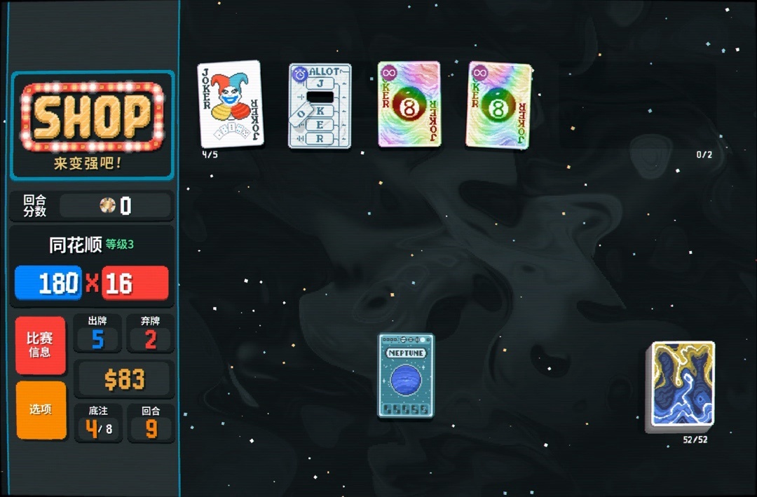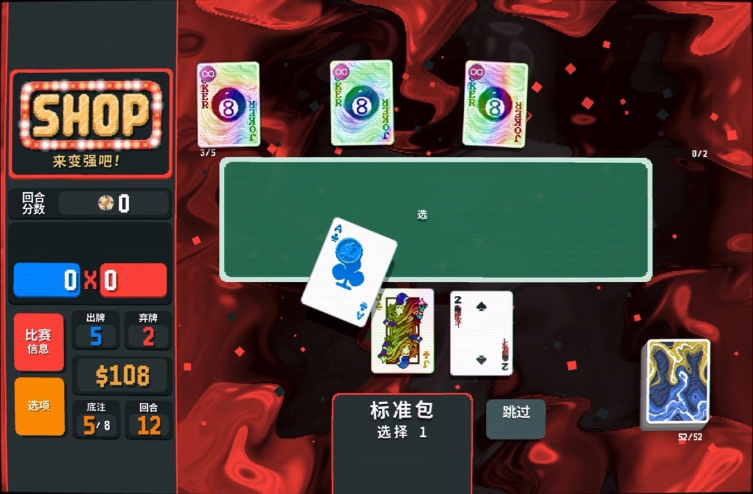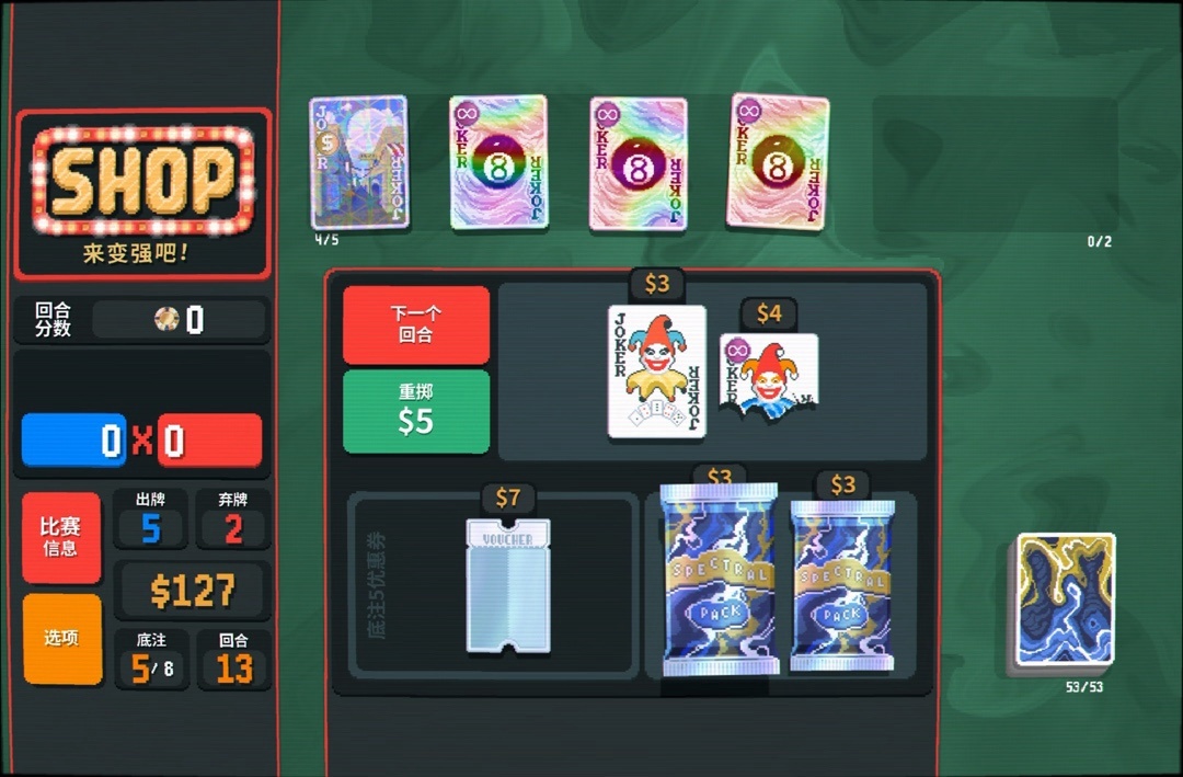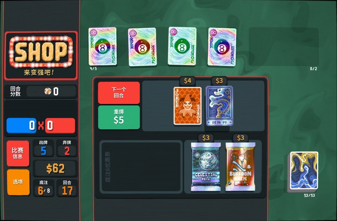 審判給了一張陰險小丑,可能大夥都不知道這小丑是幹啥的,確實沒啥存在感😅總之就是牌型包含順子,籌碼+100。我現在順子等級並不是很高,拿一個加籌碼的小丑還是不錯。