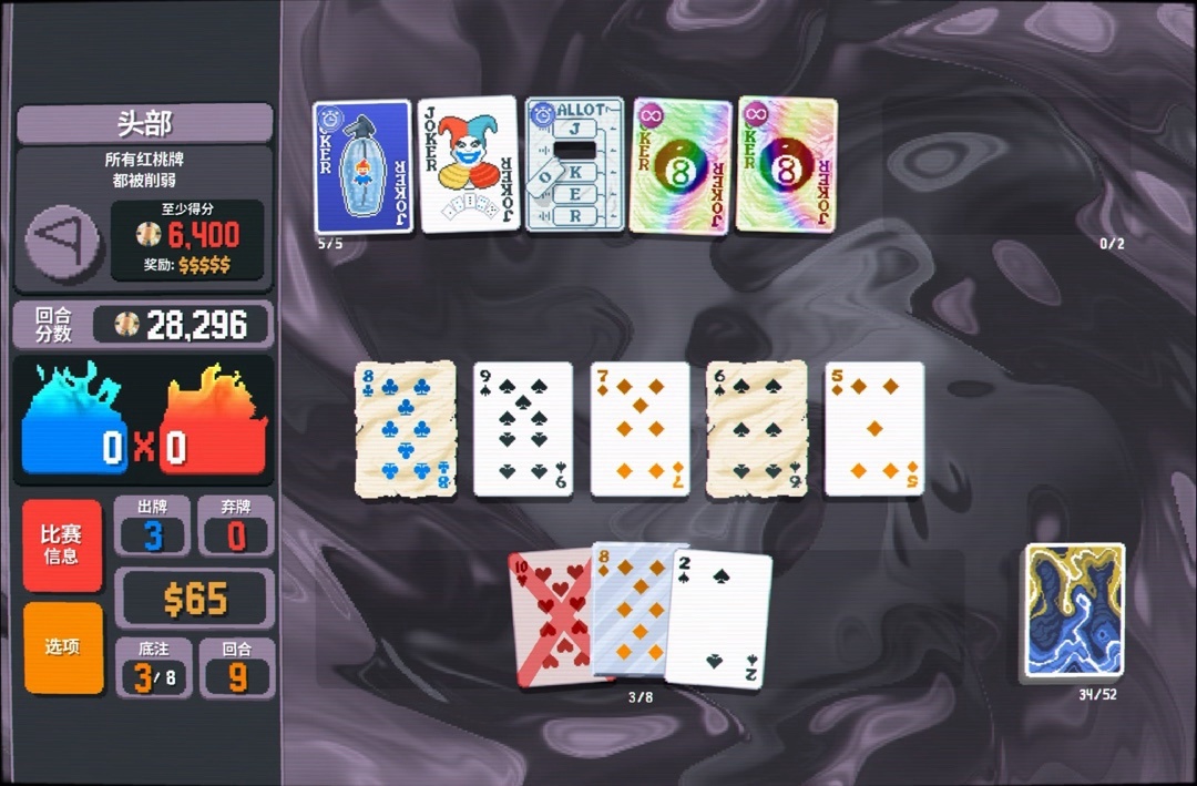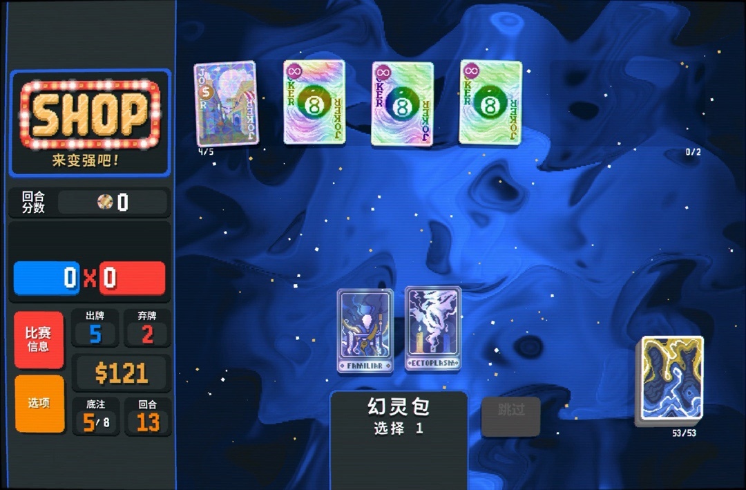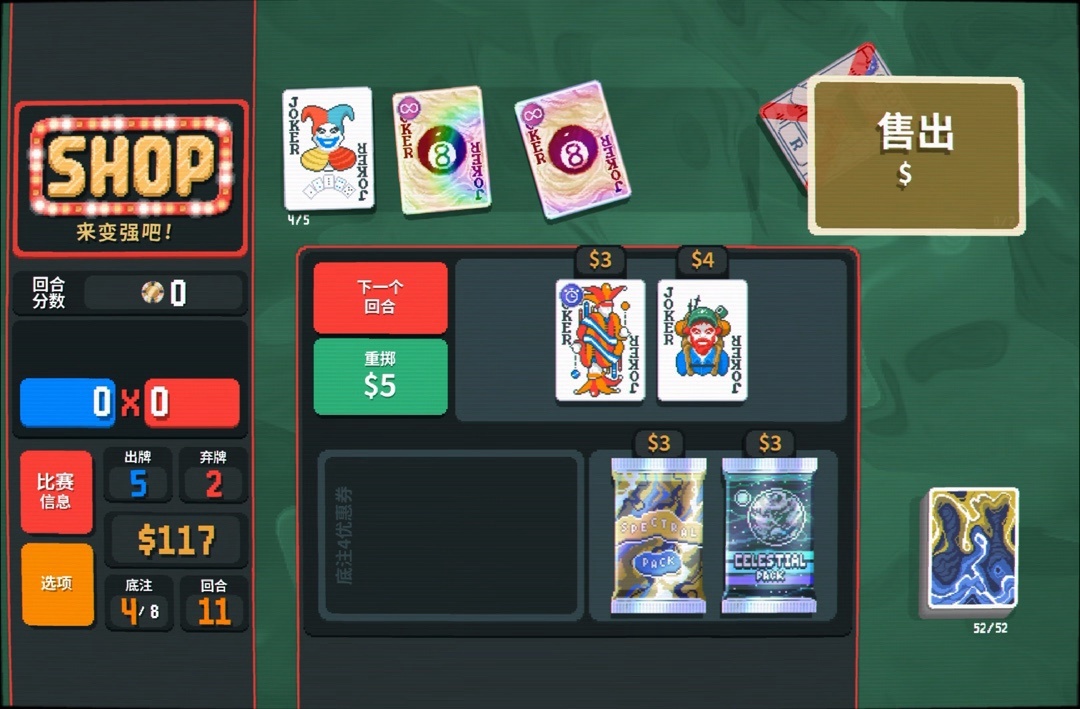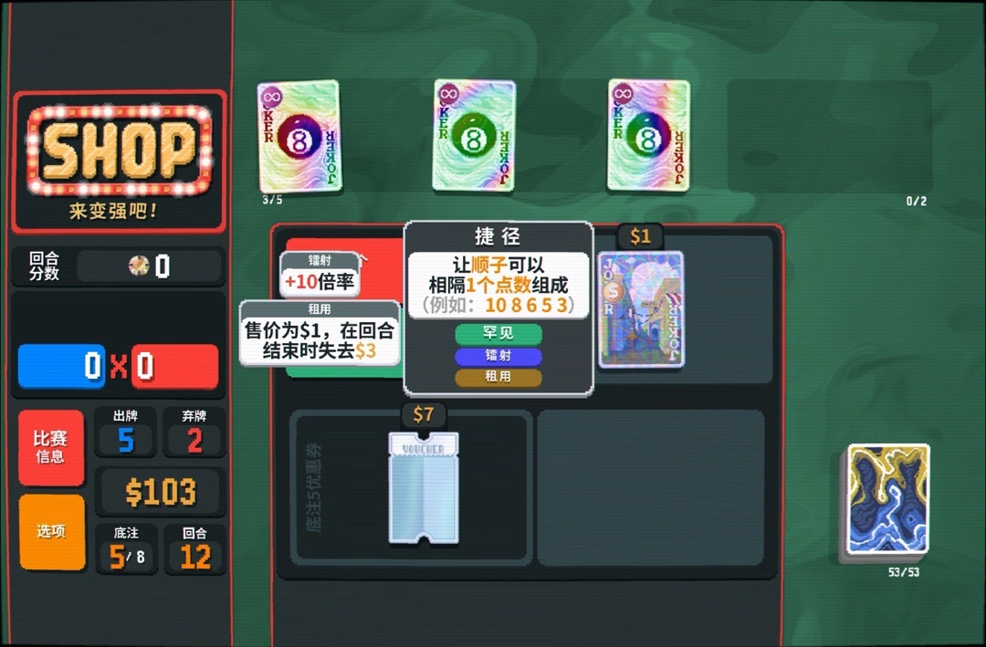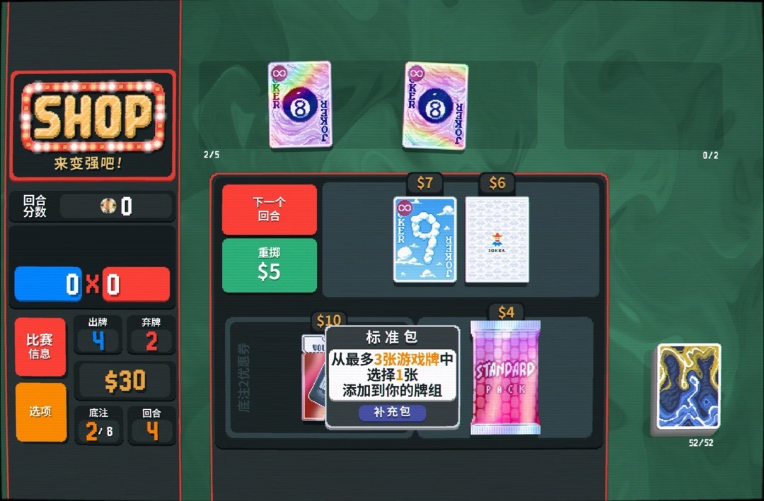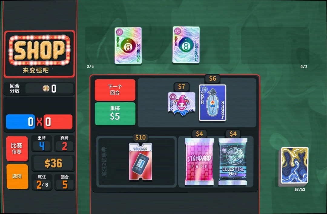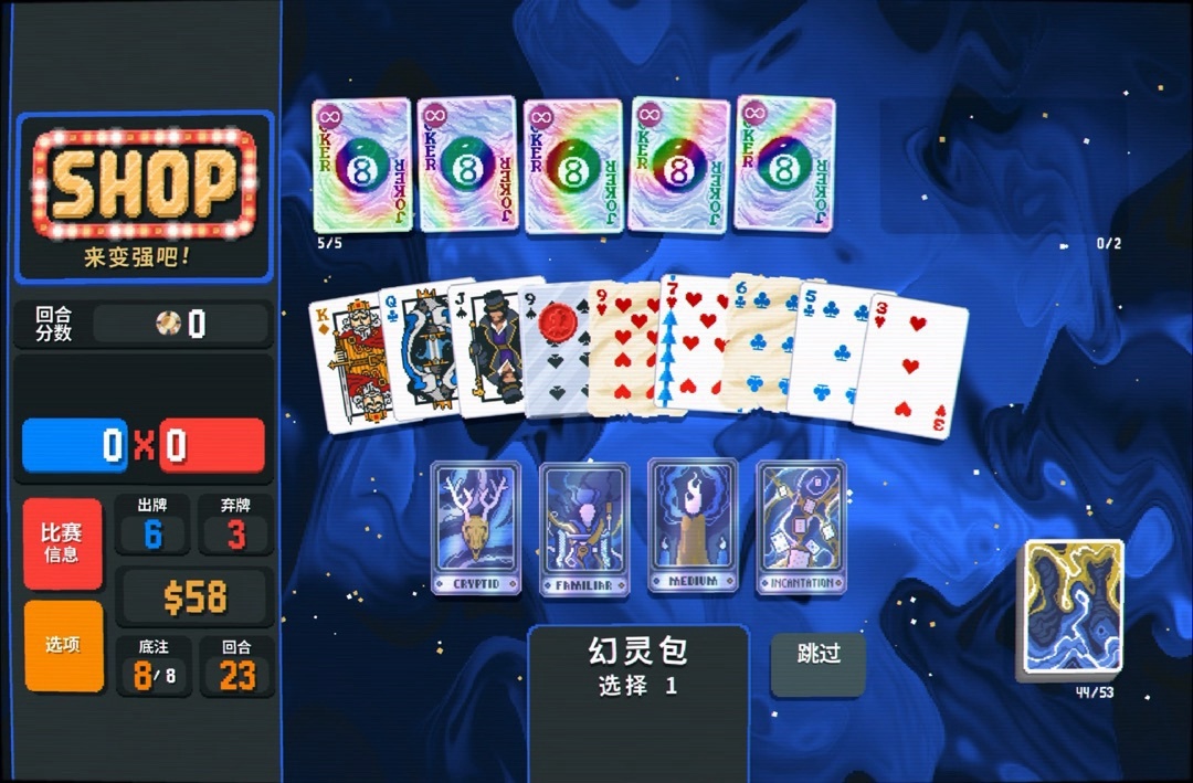 審判給了一張陰險小丑,可能大夥都不知道這小丑是幹啥的,確實沒啥存在感😅總之就是牌型包含順子,籌碼+100。我現在順子等級並不是很高,拿一個加籌碼的小丑還是不錯。