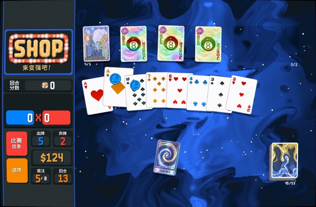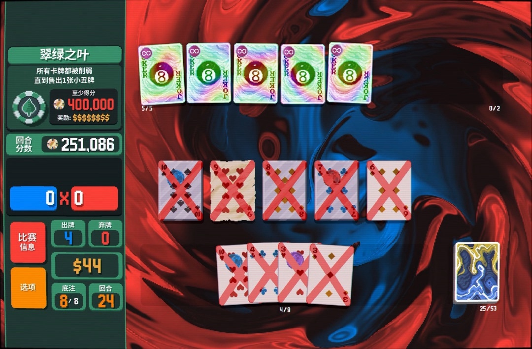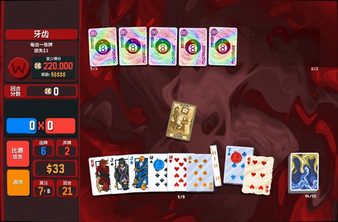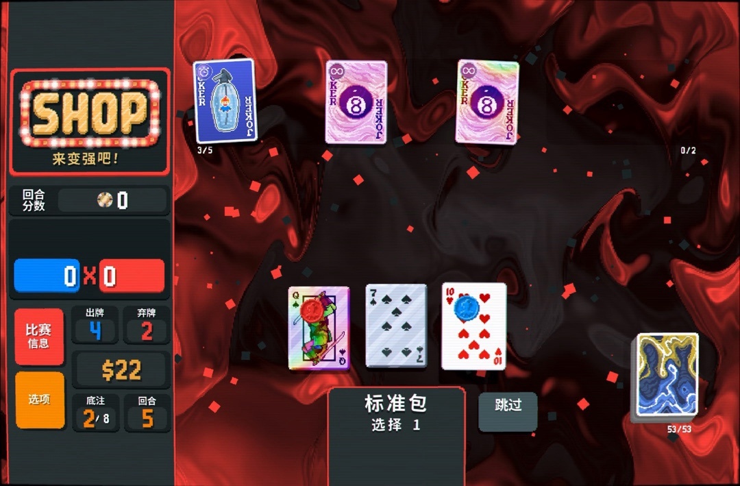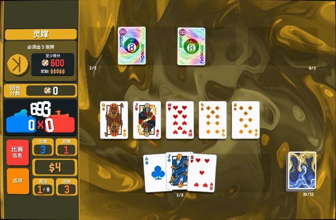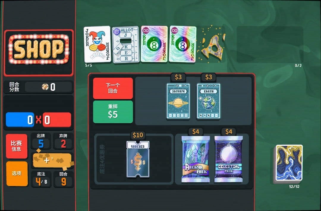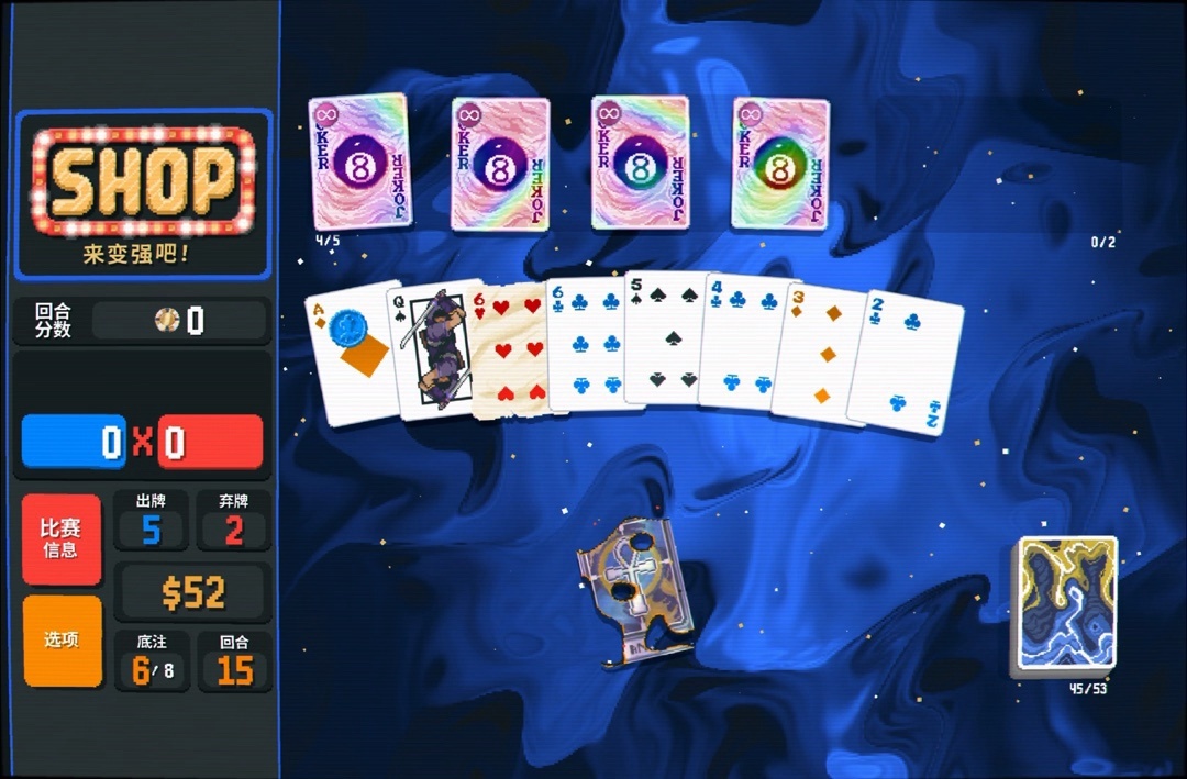 審判給了一張陰險小丑,可能大夥都不知道這小丑是幹啥的,確實沒啥存在感😅總之就是牌型包含順子,籌碼+100。我現在順子等級並不是很高,拿一個加籌碼的小丑還是不錯。