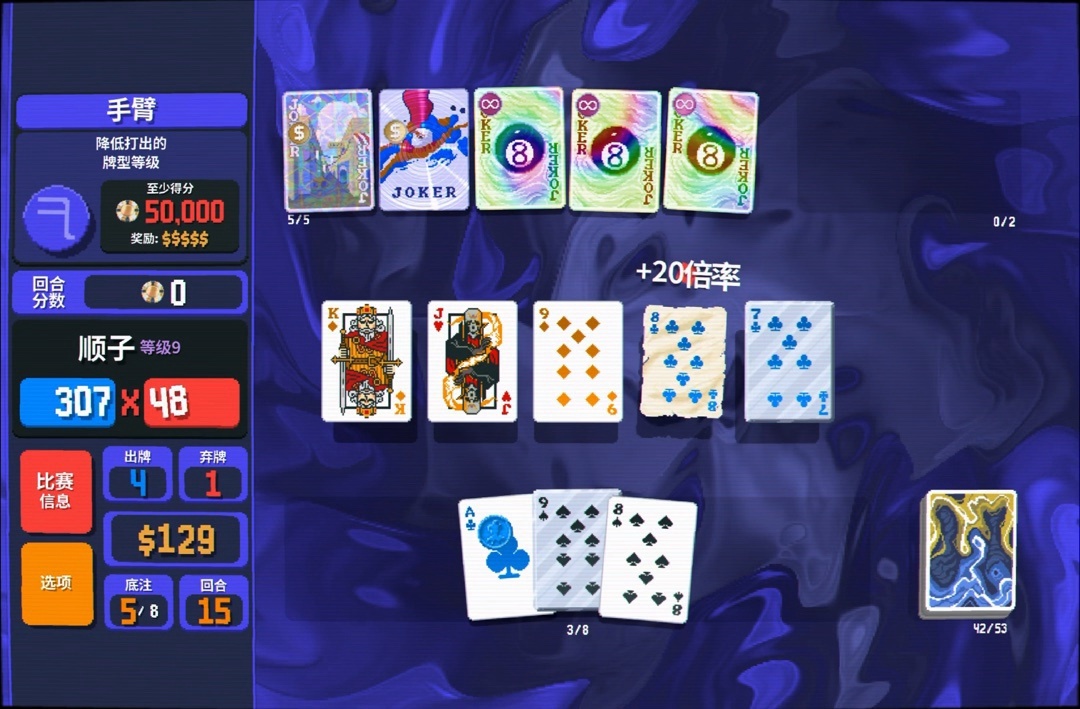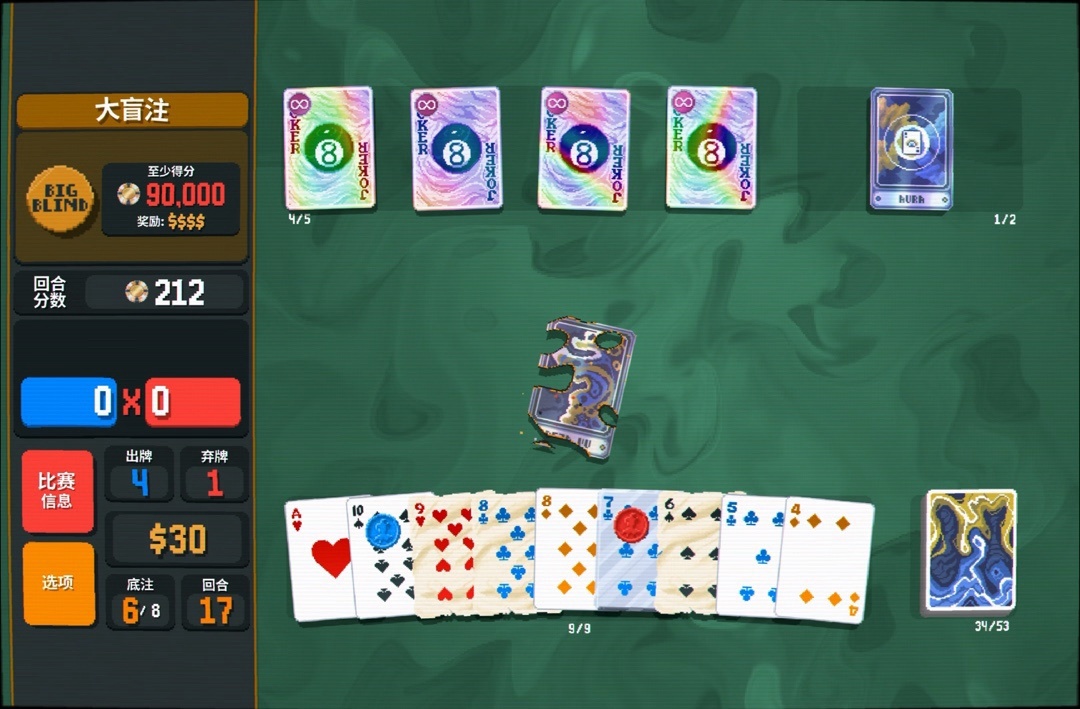 到這裏我意識到,八號球並不適合打四條、五條這種牌型,非常容易卡藍戳。(當然如果你能穩定四條/五條+八號球,你多半都能通關)