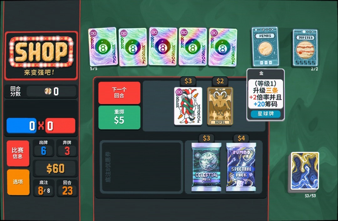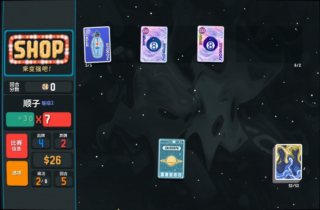 目前我的牌組改造進度幾乎爲零,給的還是土星,那這把最好打順子了,四條不太現實😑