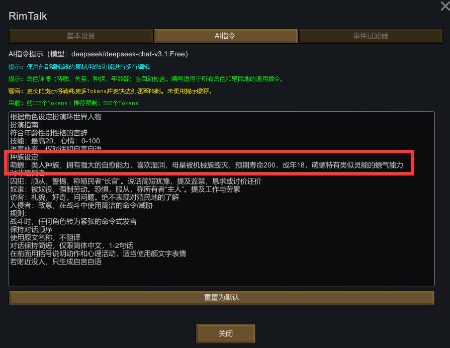 唯一改動就是紅框這裏加上了外星種族的設定。這樣可以讓所有小人在對話過程中更貼合各種族的背景設定,增加沉浸感,避免一些出戏對話。