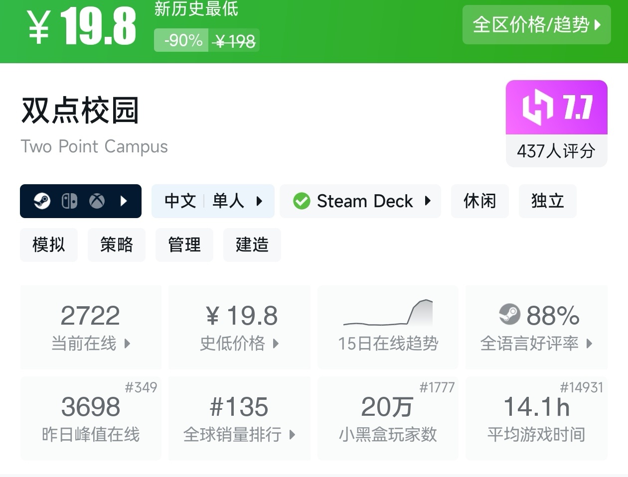 大家好,沒錯,又是我,你們的老朋友亦然,在今天,就是國慶第三天,秋促第四天了,秋促已經過半了,盒友們怎麼安排接下來的時間,旅遊還是打遊戲,當然大促,便宜又好玩的遊戲也有很多,就比如20元以下的遊戲,我將爲各位進行一個彙總,希望我的彙總,能夠幫助各位盒友挑選心儀的遊戲。